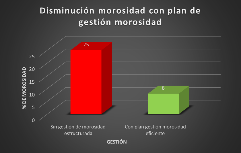 Sin gestión estructurada la morosidad puede alcanzar el 20% lo que significa una disminución considerable en la recaudación de la comunidad, sin embargo al implementar un plan eficiente de gestión de la morosidad esta cifra puede llegar a disminuir al 8%.